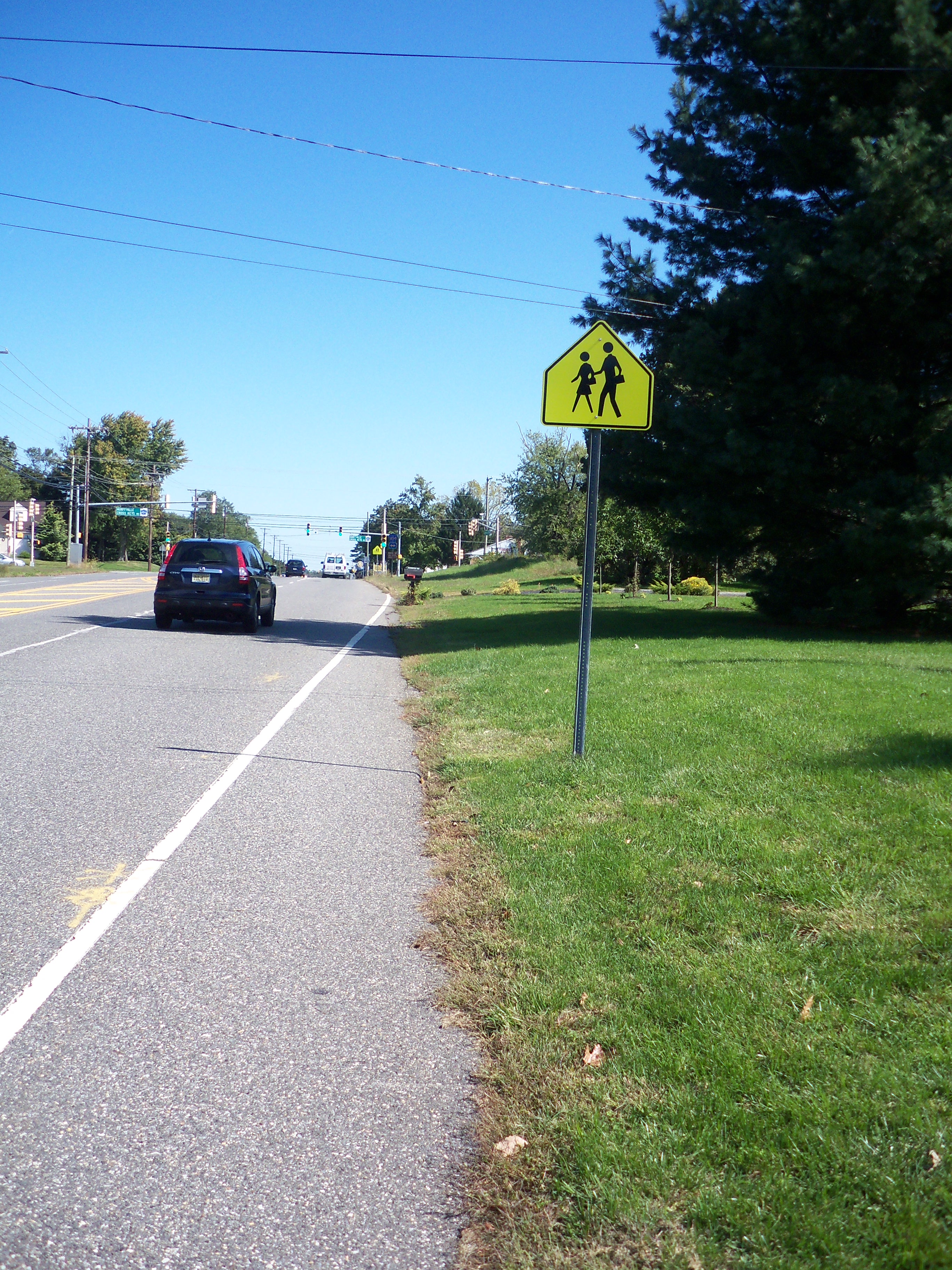 Further southeast on Hurffville-Cross Keys Road, towards three local schools, pedestrians and bicyclists don’t fare any better, even though signage indicates that school-aged children may be walking in the area.
