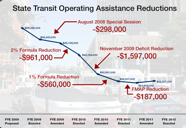 These cuts attempt to address NFTA’s $15 million budget shortfall, which stems from increased operating costs and reduced funding from Albany (money that’s known as State Operating Assistance, or STOA). Since 2009, Buffalo has seen a $3.6 million reduction in STOA and a $7 million increase in operating costs, and they’re not the only transit system in the state that’s suffered from these cutbacks.
