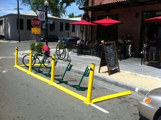 Not to be outdone, New Haven’s livable streets advocates are once again finding innovative ways to promote cycling and more livable communities in their city. Elm City Cycling (ECC) has recently partnered with SeeClickFix in an effort to implement the City’s first on-street bike corral. SeeClickFix (SCF), the popular crowd-sourcing tool, helps empower citizens to more fully participate in their communities by allowing them to identify issues of concern for elected and agency officials. The new partnership between ECC and SCF, however, will not only be used to crowd-source but will also test out the potential for “crowd-funding” small public works projects. ECC’s goal is to raise the estimated $4,200 that it will take to purchase, deliver and install a one car-parking space bike corral. Bike corrals benefit businesses with increased bike parking, benefit cyclists and pedestrians with traffic calming measures and benefit motorists with increased visibility at intersections. ECC is hoping the tool will highlight the popularity of bike corrals and serve as an impetus for New Haven to provide similar infrastructure improvements throughout the city.